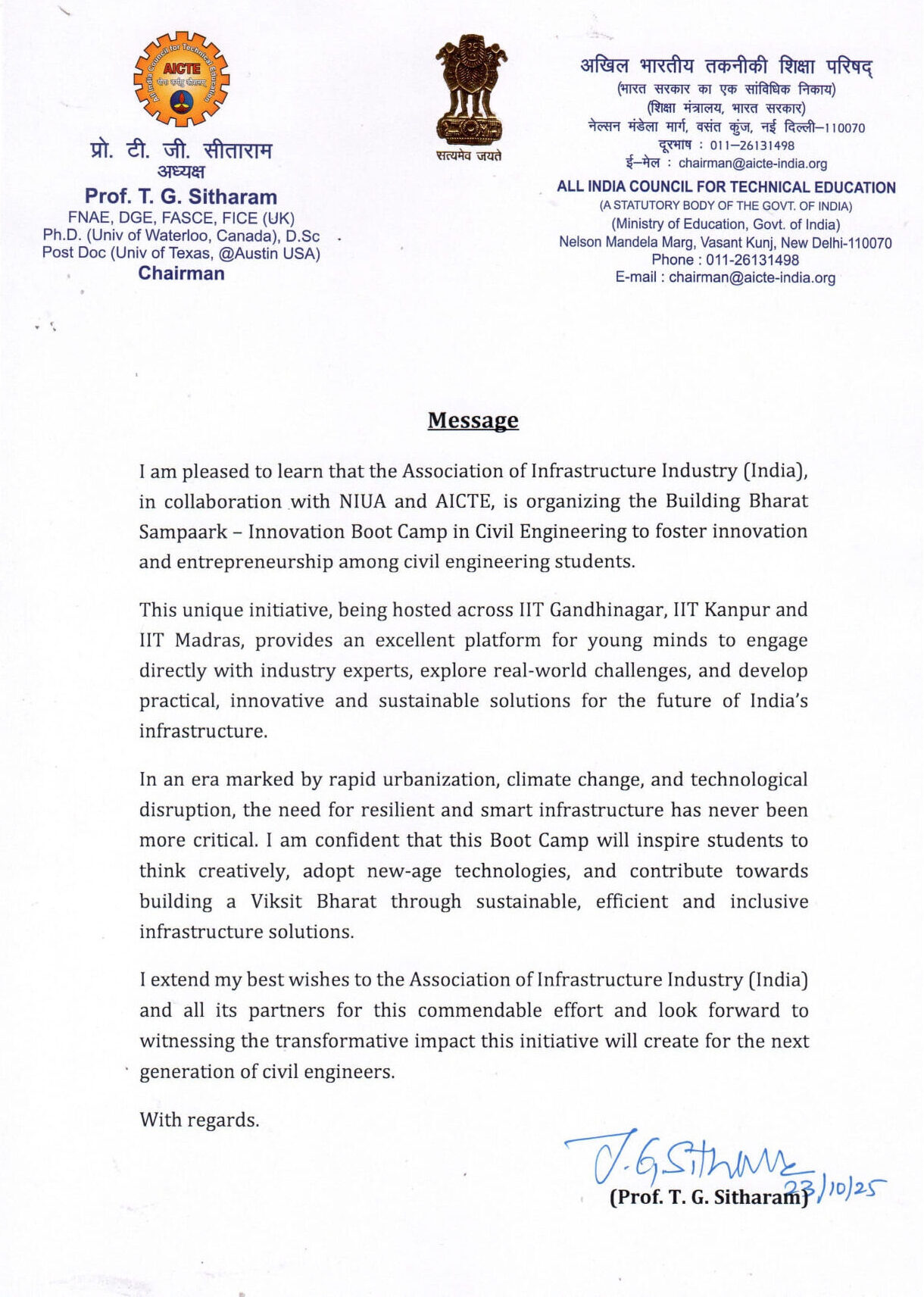 Our focus is to ignite innovation, strengthen ideation, and deepen awareness of the evolving role of civil engineers in Building Bharat.